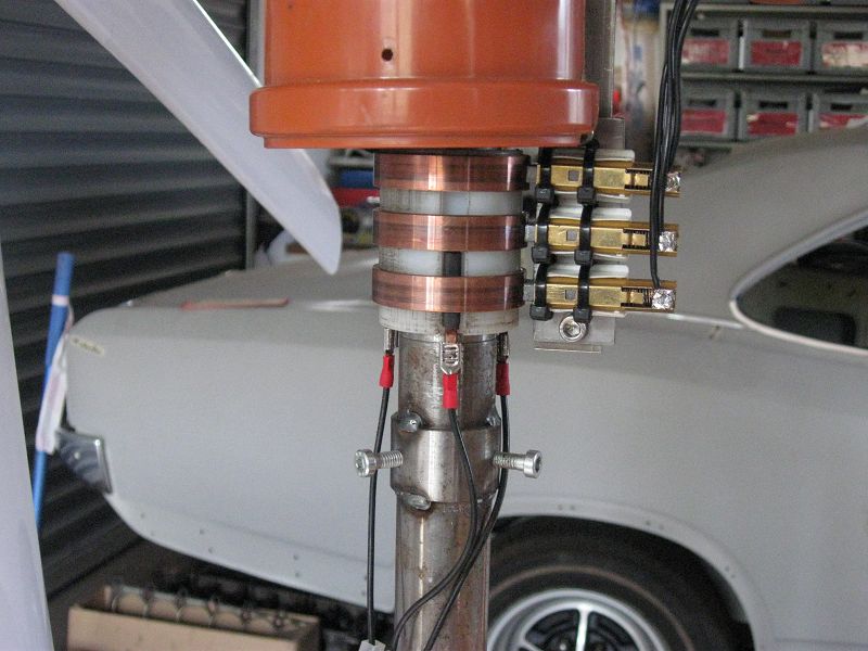 Schleifkontakte: Kupferringe getreht, Adern angelötet, isolierhülse gedreht und 3 Nuten für die Adern reingefräst, alles auf eine Zwischenwelle gepresst und die Kohlen Generatorseitig bestromt, scheint zu funktionieren, nur irgendwie kriegen die den Saft nicht komplett drüber, benötige höhere Drehzahl als bei direktem Abdriff vor den Kohlen, Kohlenmaterial ist die nächste Baustelle.