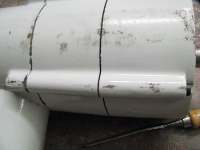 Der Generator besteht Gehäuseseitig aus 2 Teilen, Generator selbst ist in einem Metall-Alugehäuse montiert, der hintere Teil aus Kunsstoff – Polyamid oder was ähnlichen ist mittels 4 Schrauben mit dem Generator verbunden. Leider wurde der gesamte Generator überlackiert, so dass wenn dieser zerlegt werden muss, einige Schäden entstehen. Zuerst werden die 4 Schrauben entfernt und anschliessend kann man mittels Steichbeitel ganz vorsichtig der Verbindungsnaht entlang die Teile aufstemmen.