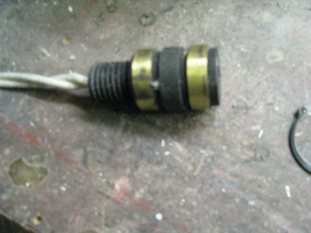 Nun nehmen wir 3 ca. 50 cm lange und 2.5 Quadrat dicke Kupferlitzen, auf ca 15mm abisolieren, zusammendrillen, etwas abbiegen und von unten in das vorher gebohrte Loch einfädeln. Die herausstehende Litze nun entdrillen und mittels Silberlot in den Schleifring einlöten. Das wird mit den anderen 2 Leitungen analog durchgeführt. Wichtig ist, dass alles immer mit dem Ohmmeter ausgemessen wird um Kurzschlüsse zu verhindern. Als Abschluss, dann die vorstehenden Kupfer-Lötreste in der Drehbank abdrehen.
