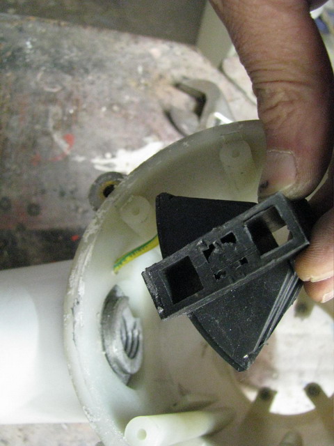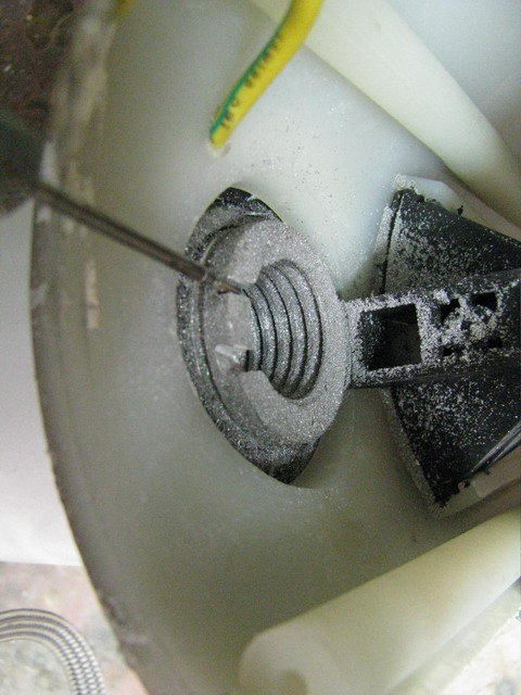 Die Schleifringe sind von oben über einen Innensechskant mit dem Drehlager-Masthülse verschraubt und kann abgeschraubt werden. Die Kohlenbürstenhalterung geht leider nicht so einfach raus.Dazu müsste man eigentlich die beiden Klemmringe unten und oben entfernen, was widerum nur mit speziellem Werkzeug möglich ist. Auch bleibt dann noch die Frage, ob beim Auspressen der Lager nicht zusätzlich etwas beschädigt wird. Ich habe mich entschlossen, eine Kerbe, genau der Breite des Kohlenhalters entsprechend, eine Nut einzufräsen. Geht sehr leicht mit der Dremel, da das Ding aus ALU gefertigt ist.