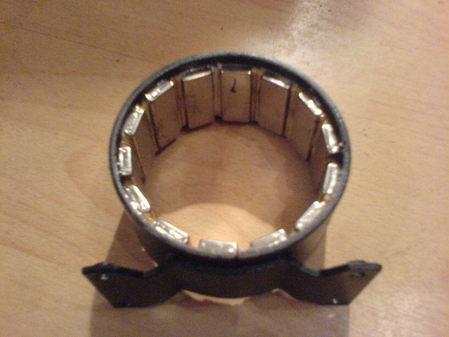 EIn großes Problem sehe ich bei der Einpassung der Magnete. zum einen müssen diese mit der vollen Fläche direkt am Gehöuse anliegen um einen magnetischen Rückschluss zu gewährleisten, zum anderen dürfen sie ja aber auch nicht an den Spulen reiben. Man muss die Magnete also auf beiden Seiten rund schleifen bzw. sich Maßanfertigungen bestellen. An dem Punkt angelangt habe ich dann damals aufgehört weiter darüber nachzudenken. Durch den Austausch der Ferritmagnete durch starke Neos wäre sicherlich ein erheblich früherer Ladebeginn möglich, ob es jedoch für einen getriebelosen Antrieb durh einen kleinen Rotor reicht wage ich zu bezweifeln.