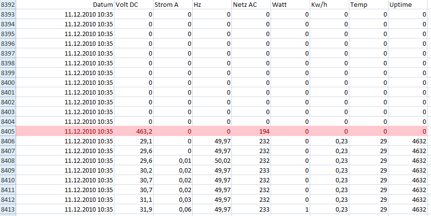 ja die Vorzahl war 0 und hier ist der Datensatz ! Bin gespannt ob andere solche Peaks auch haben.Allerdings kommt das bei mir sehr sehr selten vor.