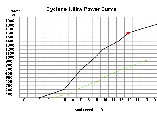 Also hier ist was ich heute gemessen habe (güne Linie , die orangen Punkte sind errechneten Watt also AMP x Volt bei gemessener Windgeschwindigkeit )