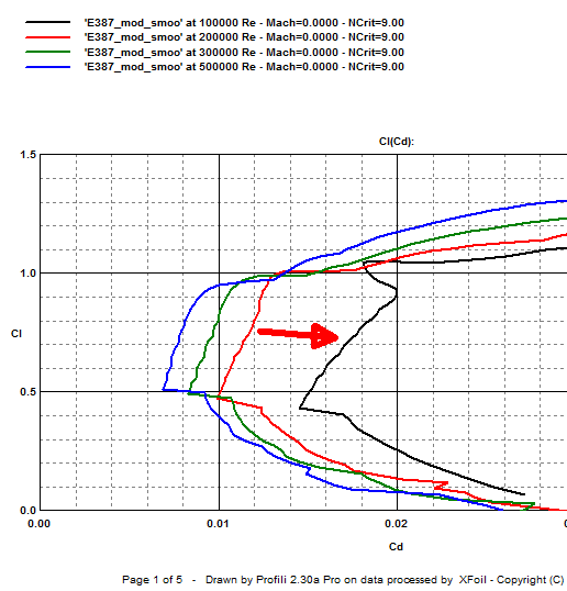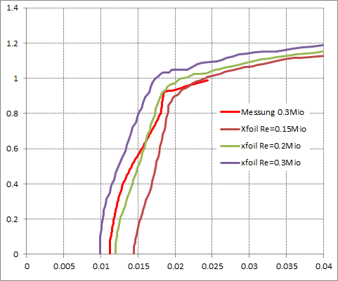 Ich habe auch nur gesagt, dass xfoil etwas zu optimistisch ist und dass die Übereinstimmung mit Messungen besser "hinkommt", wenn man die Reynoldszahl halbiert.