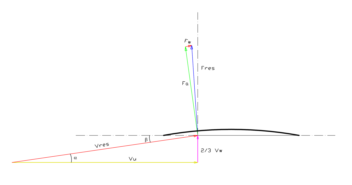 Erst wenn (durch die Profilstellung dann - Anstellwinkel) die Komponente Fw so groß wird, dass sie die Drehachse berühren würde, könnte die wahre Luftkraft F_res