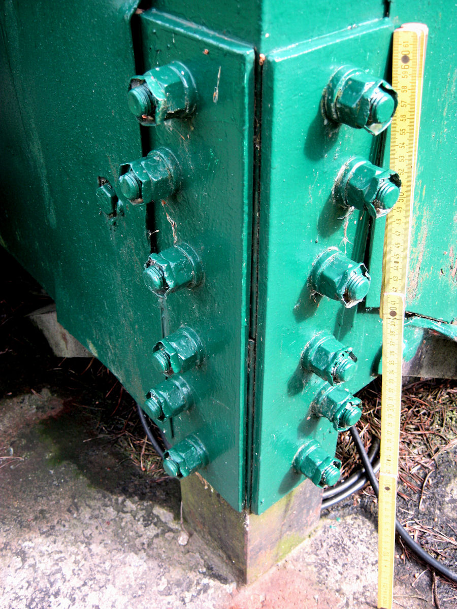 Momentan kann man noch wunderbar bis ran fahren. Laut "Durchblicker" könne man den Mast auch mit Kran halten und z.B. einzelne Segmente abschrauben. Am Boden dann die weitere Zerlegung. GUTE massive und stabile Ausführung. Nur etwas Flugrost an manchen Stellen (siehe 3 Bilder)[img][img]