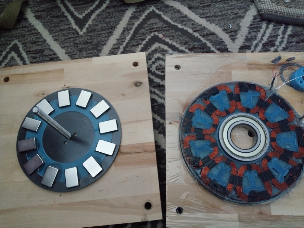 Zusammengebaut wird der Generator nur 3 cm Hoch sein... mit Gehäuse natürlich etwas mehr. Über eine 10mm Achse wird der Geni dann mit der VAWT verbunden.