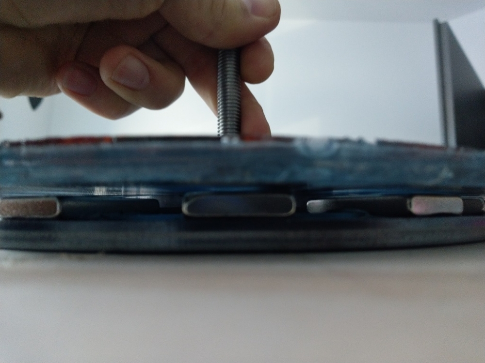 - Die Stahlronden werden mit 4 M4x35 Schrauben mittig durch einen Innenzylinder befestigt.