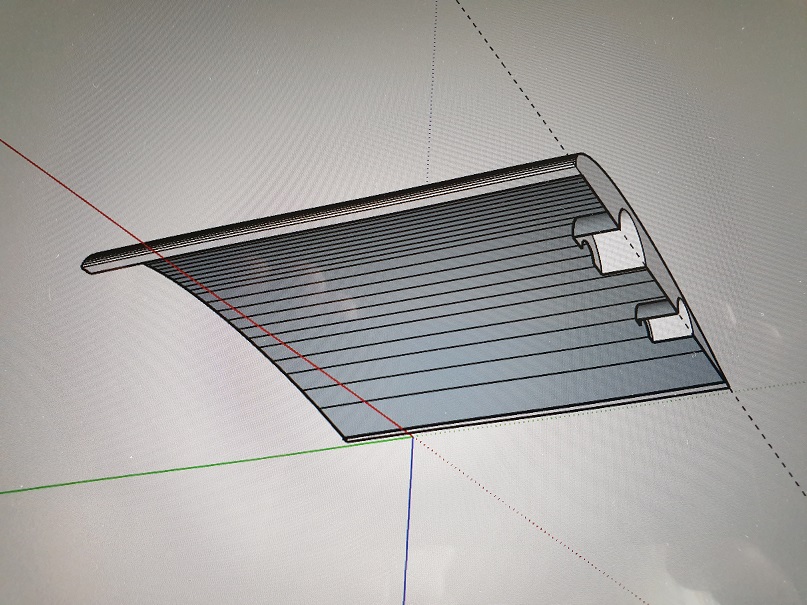 Als Vorversuch möchte ich auf dem alten Drucker ein 200mm breites / langes Segment drucken mit einem 20% Co-gefülltem PLA-Filament. Das erreicht zwar nicht die Festigkeit und Beständigkeit für den Außeneinsatz, ich kann aber schon mal schauen wie sich das mit der am dünnsten möglichen Wandstärke anfühlt und was sowas dann wiegt.