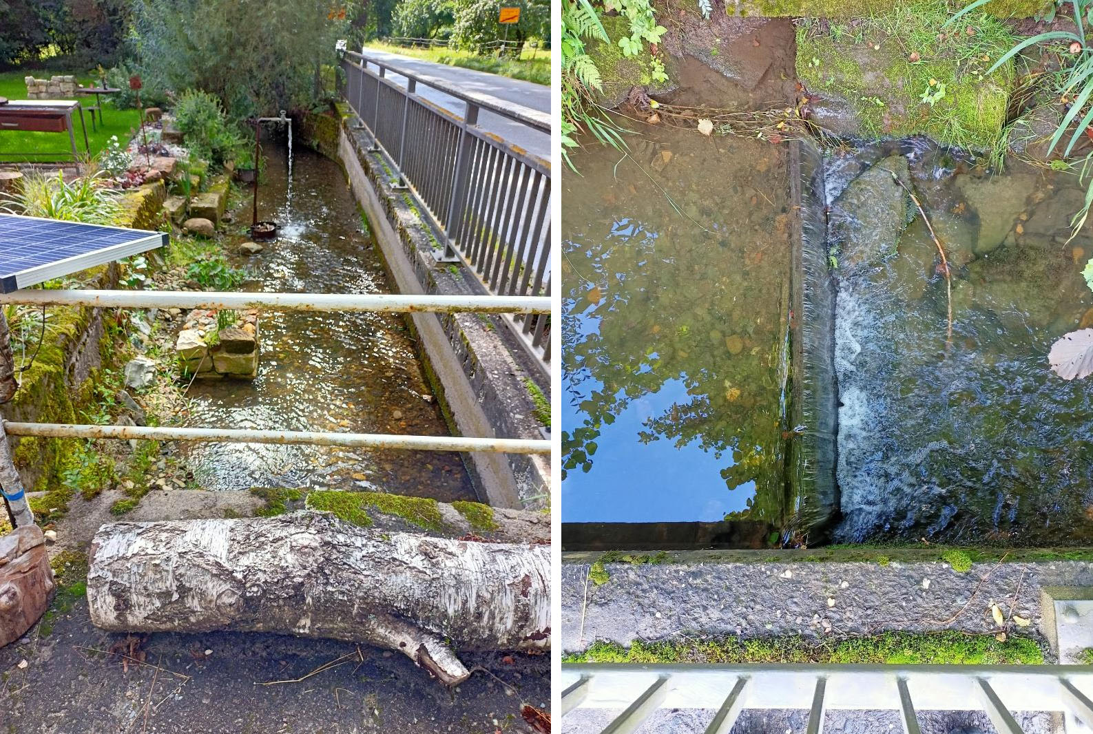 der Bach ist ca 1.2 Meter breit , ..... ein Monster im Winter oder nach Starkregen , aber meine Instationen, und Nachbars Staustufe habens ja weggesteckt .... bin am grübeln wie ich da eine Wasserkraft- Anlage hin bekomme.