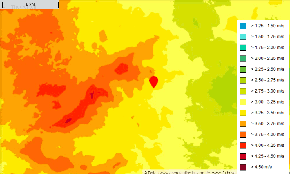 Hab heute die gps Koordinaten des angedachten Standort erhalten und werde ihn mir morgen mit dem Bauer zusammen anschauen. Dem Geländeprofil nach scheint der Standort mir okay. Nach Westen keine Bebauung und nach Norden so 12% Steigung, welche den Wind mehr Richtung West drücken könnte. Allerding liegt das Dorf so 1 km im Windschatten von "Fichtelgebirge" Höhenzug (250 Meter höher) der von Südwest nach Nordost verläuft (Gefrees - Schwarzenbach (liegen aber beide auf der anderen=westlichen Seite). In seinem Windschatten müsste der Westwind aber auch von Südwest nach Nordost ziehen, und da wäre das Windrad voll im Wind.