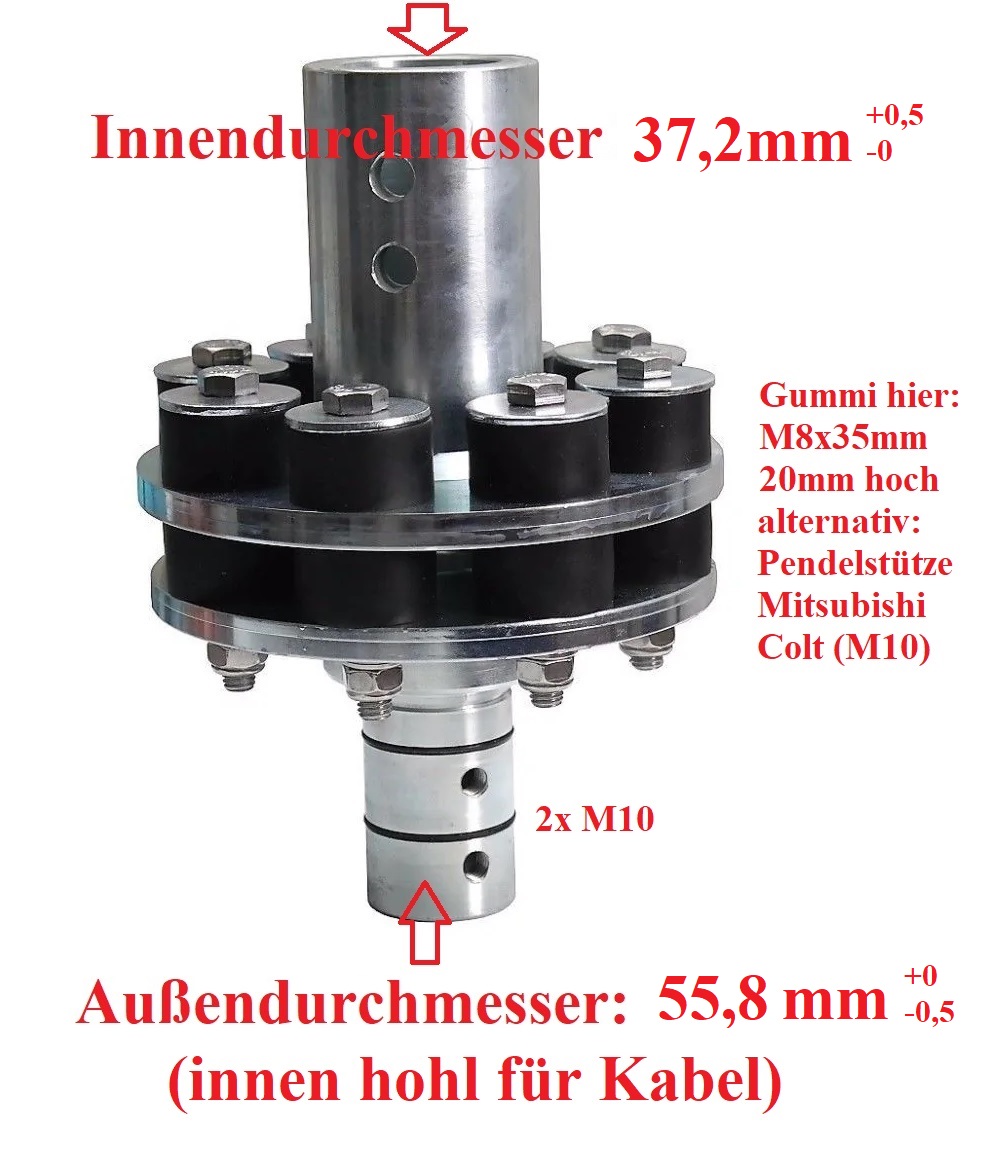 Ich fang gerade oben am Mast an mit dem Vibrationsdämpfer und der Aufnahme für mein 60er Rohr. Ja da gibt es fertig was für 100Euro bei Ista, aber dann nur für 40er Rohr mit Seilen. Aber der Metallbauer sagt bekommen wir günstiger und gleich passend für mein 60er Rohr hin :-) 2x Drehteile werden auf Platten geschweißt, die Gummis werden vom Stabilisator vom Auto genommen, alles was halt so da liegt ;-) Die tollen Nuten und O-Ringe lass ich dann auch gleich noch rein drehen. Sieht so schön aus... Die richtigen Leute muss man nur kennen...