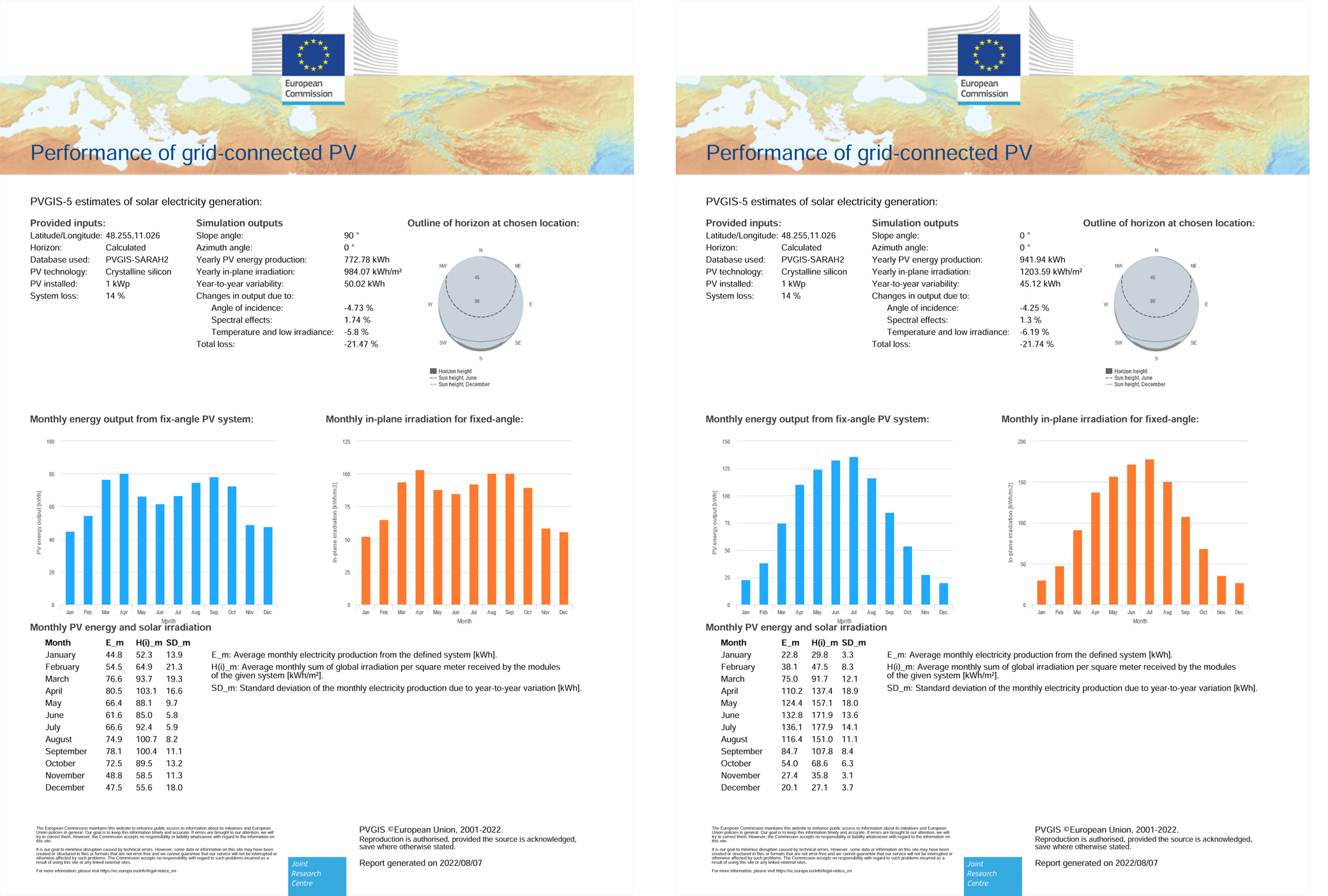 sowas spuckt PVGIS aus (Süddeutschland ) zum Thema Vertikal -Horizontal gen Süd ausgerichtet