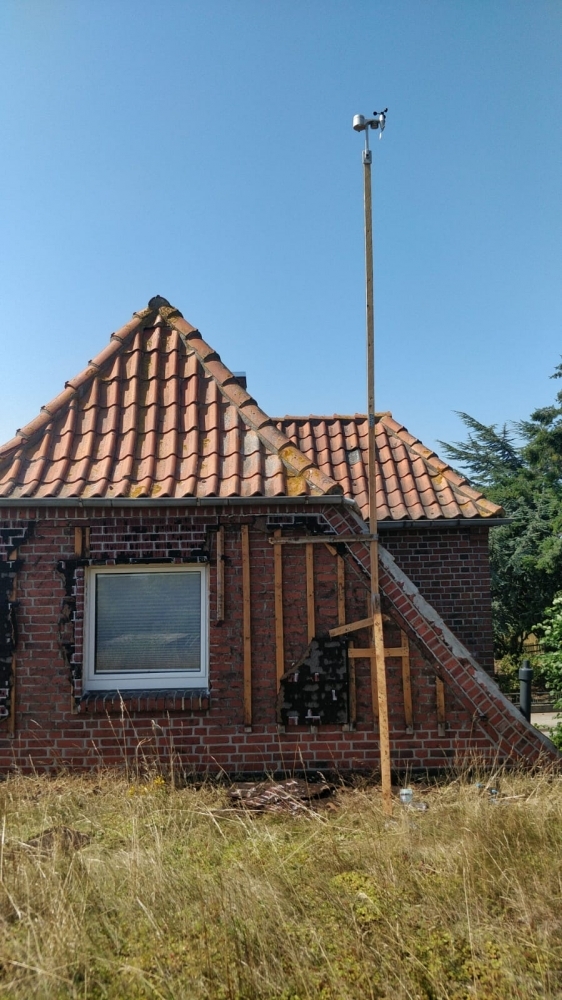 Windrichtung ist laut Windatlas meistens West. Mittlere Geschwindigkeit ca. 5m/s auf 10m. Ganz frei ist die Windsicht nicht. Da Straße und Haus gegenüber genau richtung Westen ligen, jedoch auch nicht so hoch sind.