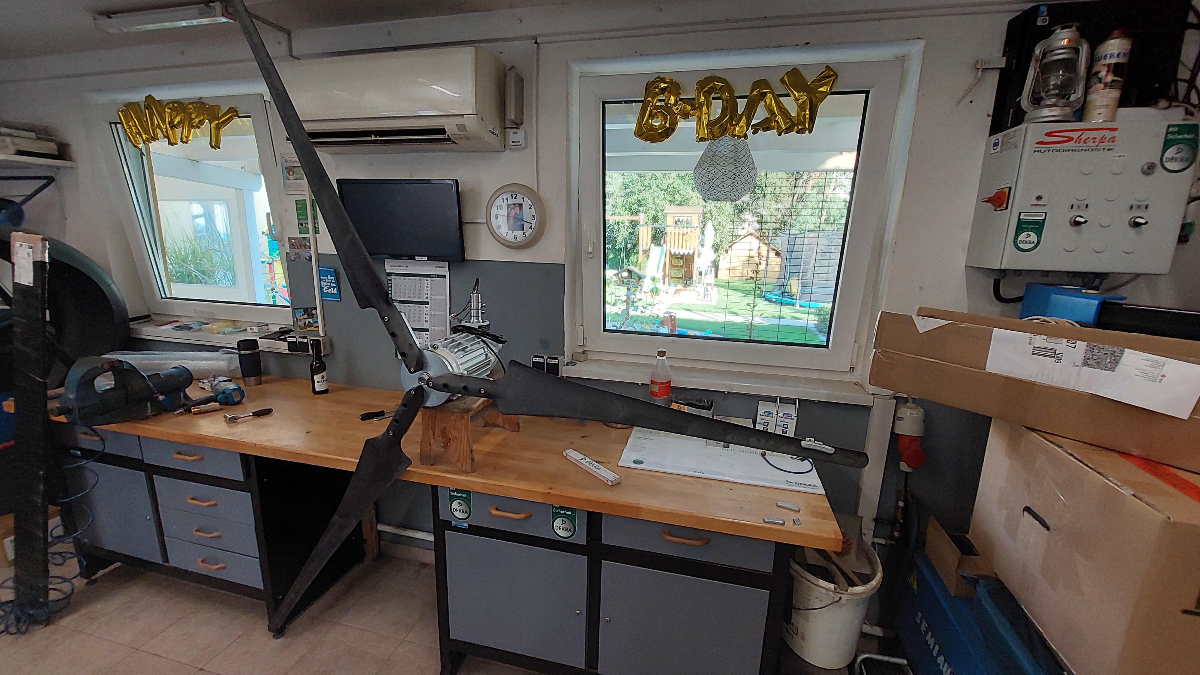 Die Messung klappte übrigens 1a mit Auswuchtgewichten vom Auto. Die konnte ich in 5g Schritten schön auf den Flügel stecken. Siehe Bilder.