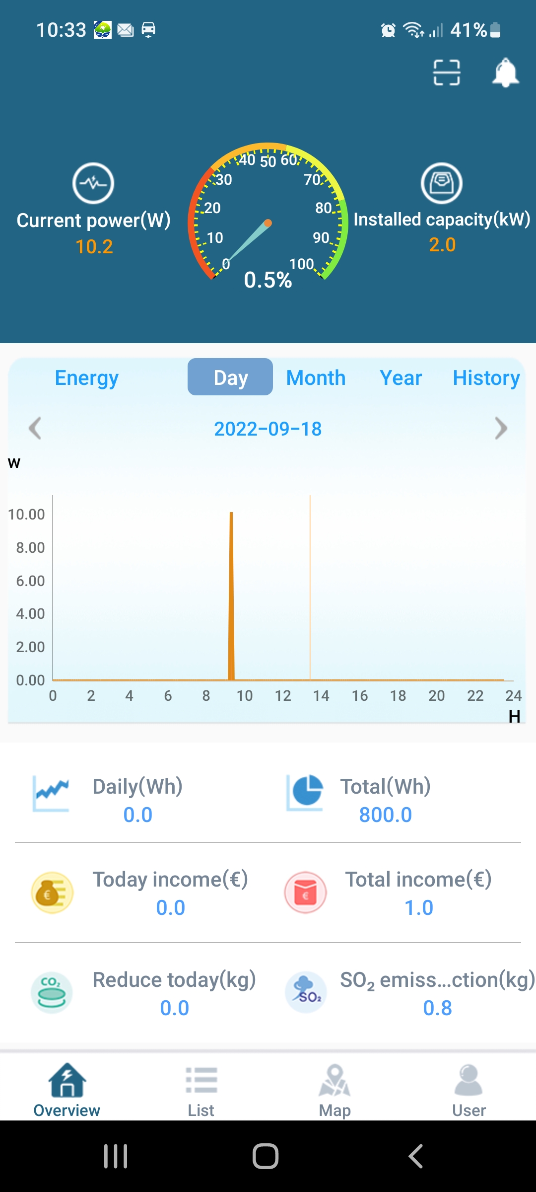 Mein fehlender WLAN Adapter ist übrigens auch angekommen. Die "tolle" China App (englisch und Chinesisch können gewählt werden) ist vollgestopft mit verschachtelten Einstellungen. Die Anzeige in der App ist ca. 10min zeitversetzt und dann ein Mittelwert. Also mit dem Akkuschrauber mal 2min 50W erzeugen resultiert in der App 10min später auf verharren bei 10W für ca. 10min. Nicht optimal, aber wenn am Ende des Tages die Summenwerte stimmen ist das akzeptabel. Mal ein Bild der App anbei.