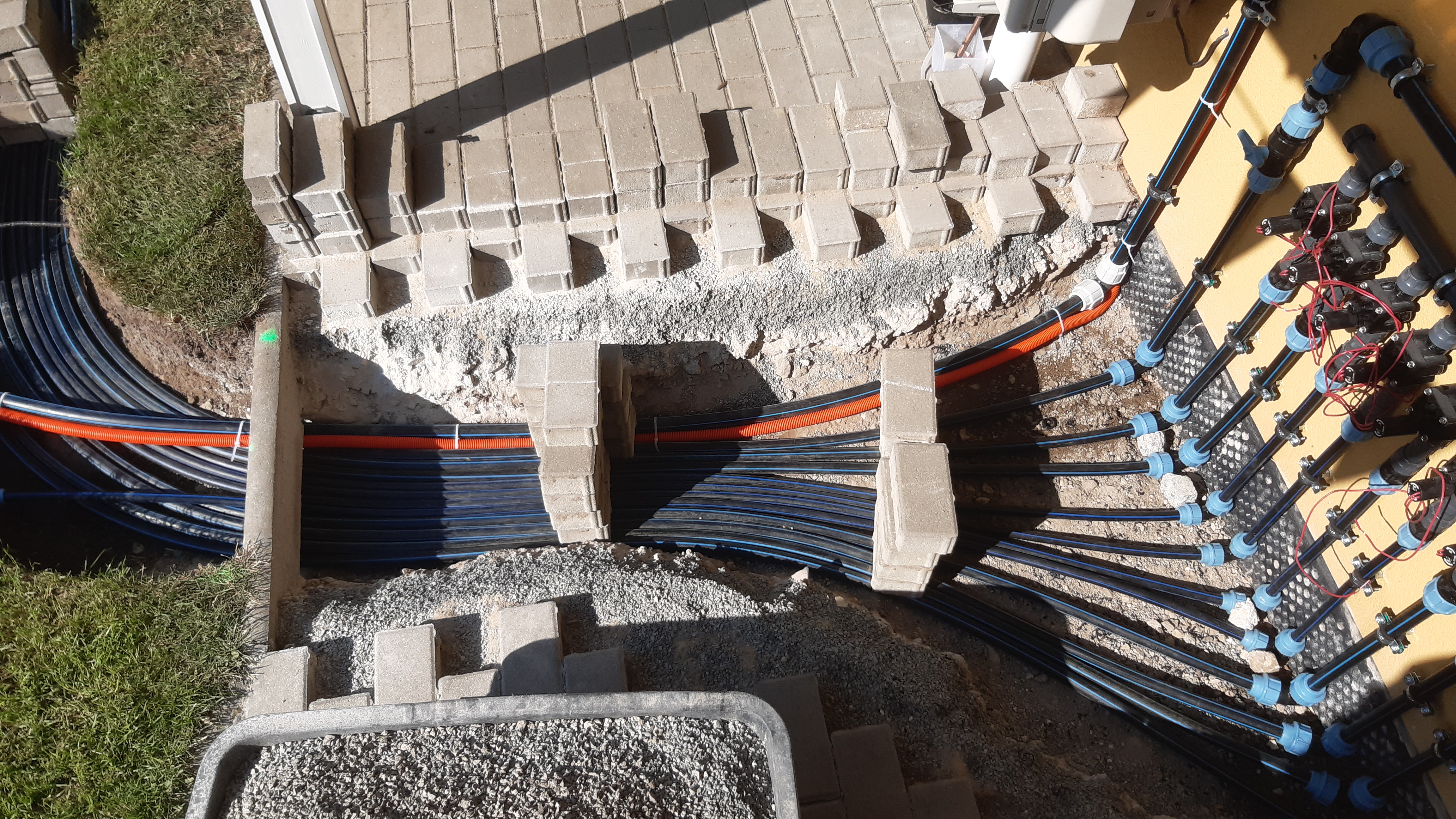 Von meiner App gesteuerten Bewässerungsanlage mit 10 Kreisen im ganzen Garten will ich gar nicht erst reden. Da nur mal ein Bild der Leitungsverlegung anbei. Das macht auch alles allein, Wetterabhängig, Koniferen, Gewächshaus, Beete, Rasen...