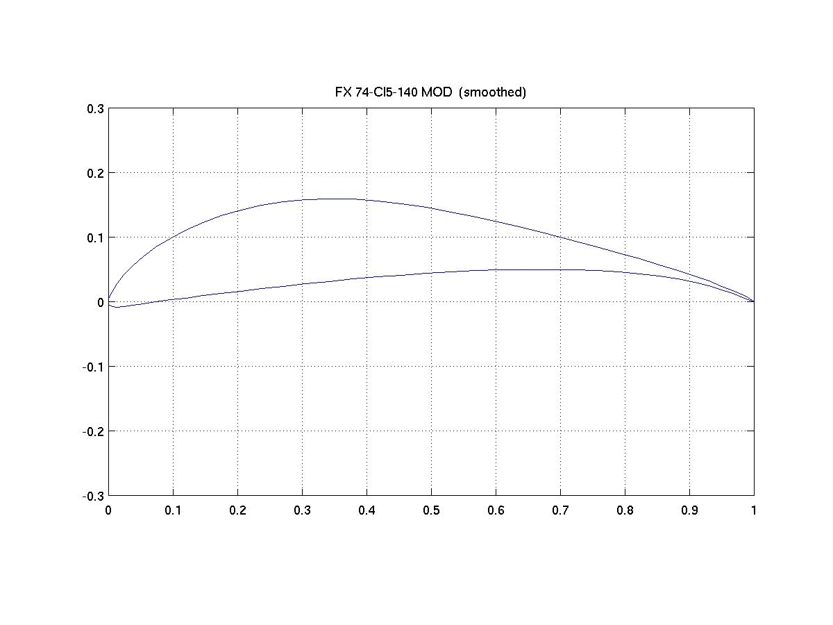 Habe mir hoffentlich das richtige modifizierte Profil raus gesucht zur Simulation. Ein anderes in der Umgebung vom FX74-CL5-140 mit Vermerk Low-Re wird aber bei Prof. Selig garnicht gelistet.