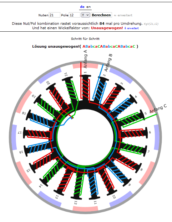 Jop, kommt fast hin. 21 Spulenköpfe, 12 Magnetreihen. Also nicht ganz 2 zu 3. Keine Schrägstellung (beim 1500er)