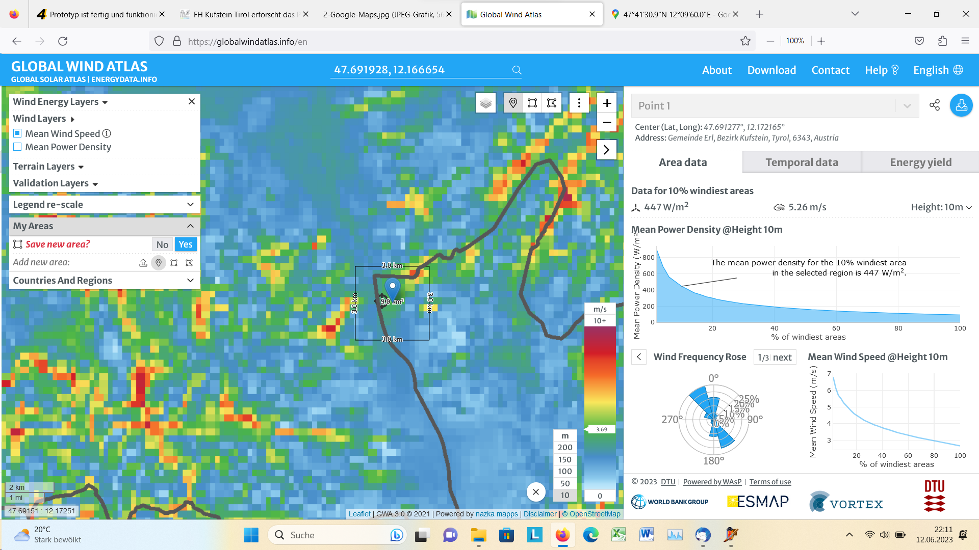 An der engsten Stelle unmittelbar am Inn hättest Du lt. Globalwindatlas in 10m Höhe aber nur um 3,7 m/s Jahresmittelwind.