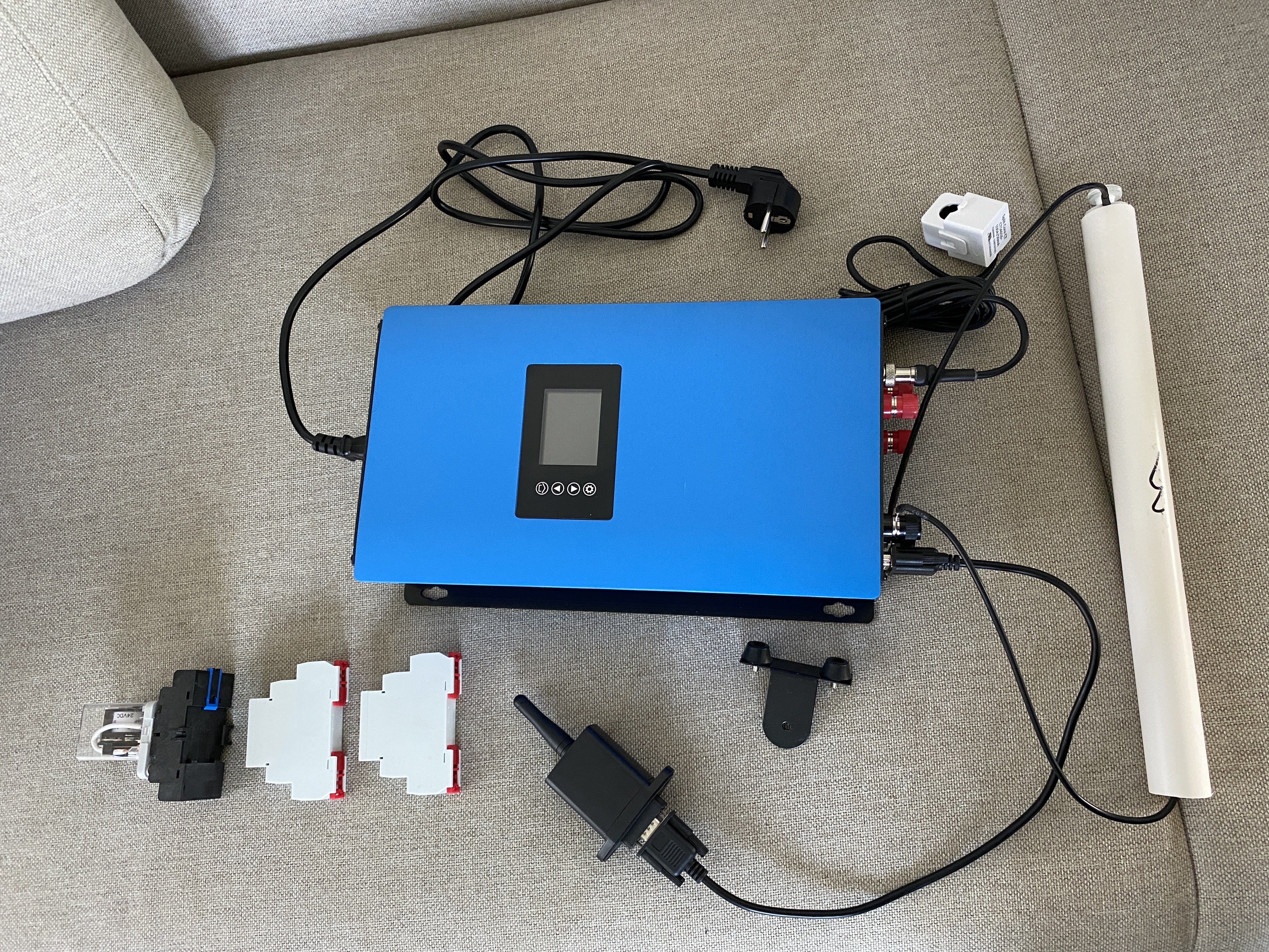 Ebenfalls dabei sind alle Elektronikbauteile, dazu zählt der Wechselrichter (ja der 1000er ist der Richtige und nicht der 2000er), Dumpload, Wifi Modul sowie die Einzelkomponenten für die Notabschaltung. Ich liefere eine Kennlinie mit speziell für die i2000 sowie den Schaltplan für die Notabschaltung.
