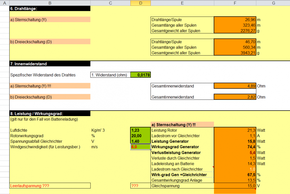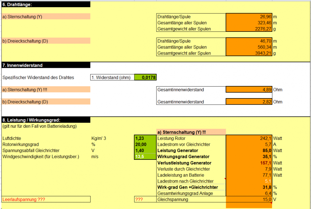 (Arbeit mit zulässiger Stromdichte habe ich eingeführt. Wert muss ggf. verändert werden, insbes. wenn Generator zu heiß.)