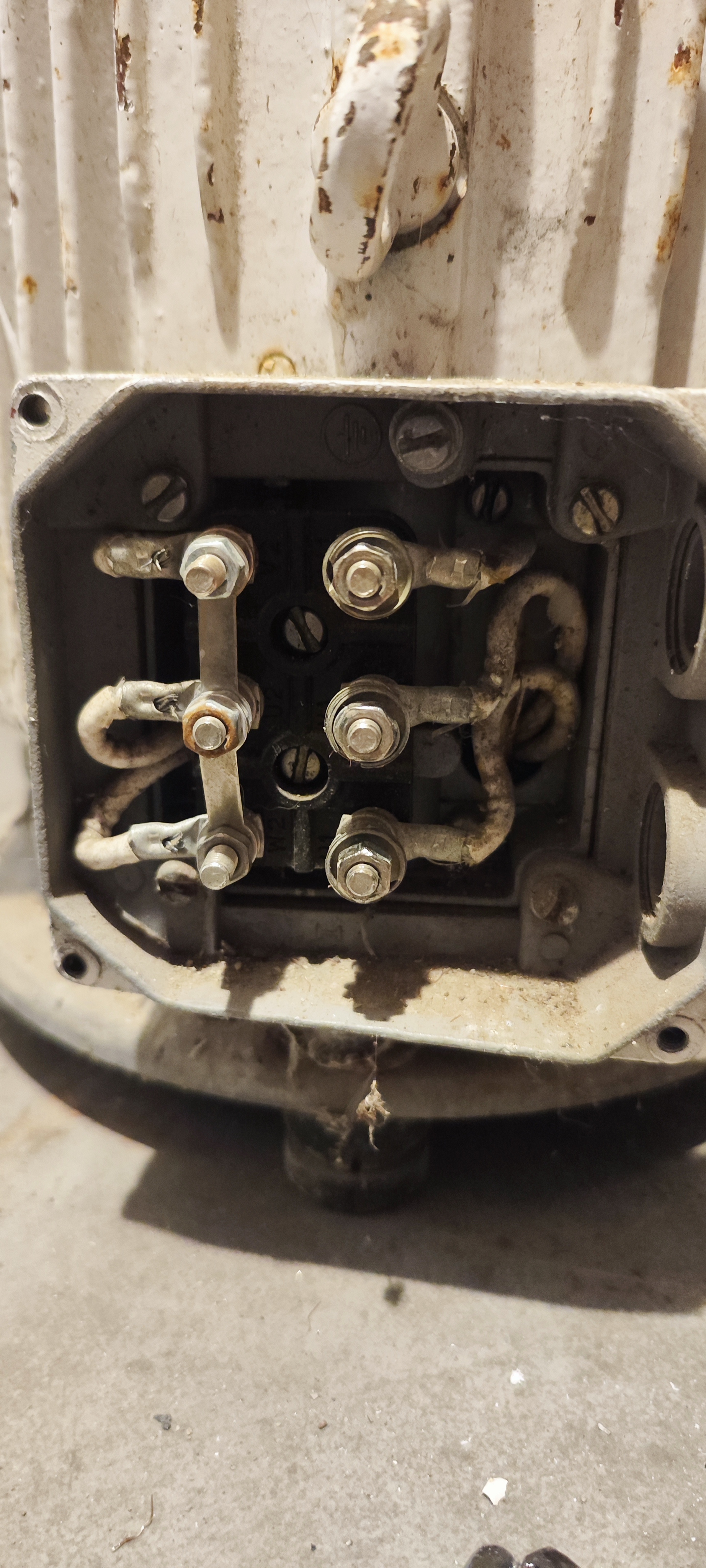 Die Anschlüsse im Klembrett sind im Stern verschaltet und deuten auf eine höhere Betriebsspannung hin.(Bergbau und EX geschützt).