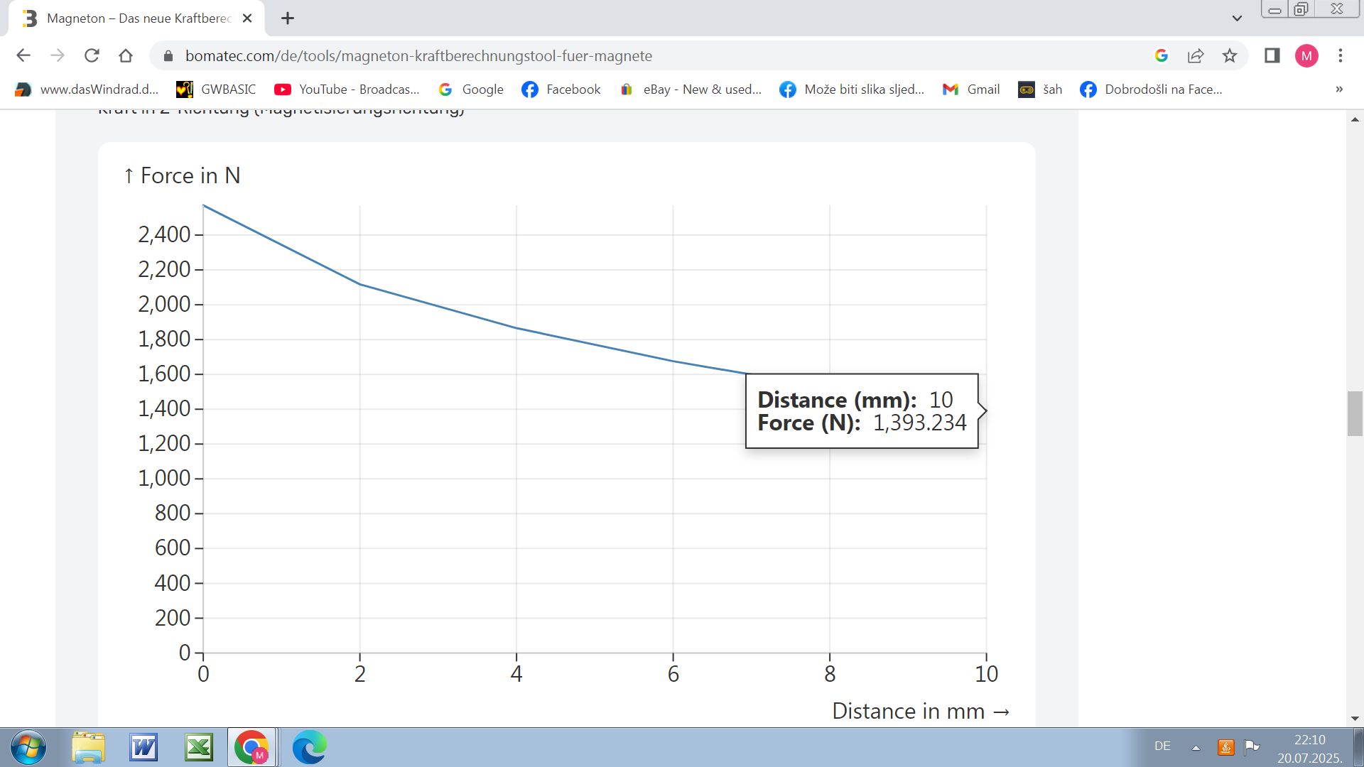 Die Energiewerte der Magnete sind auch für eine Magnetlänge von einem Meter angegeben, also runterrechnen auf 1 bis 2 cm und kann auch nicht ganz ausgenutzt werden und geben an bei 1 HZ oder einem Pohlwechsel.