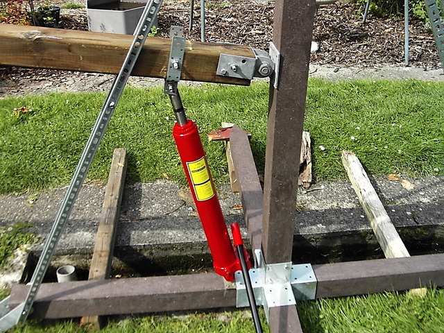 Zum aufrichten habe ich dann einen Kettenzug mit einer 6 Meter Kette verwendet: