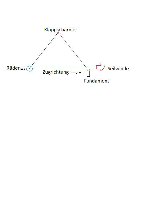 Auch wenn das was die machen beachtlich ist, hast Du mit Deiner Anmerkung recht. Auch ist die Zugrichtung des Seils bei Errichtung des Grundturms am Ende von der Richtung ungünstig, so dass diese Kraft nicht mehr beim Aufrichten hilft.