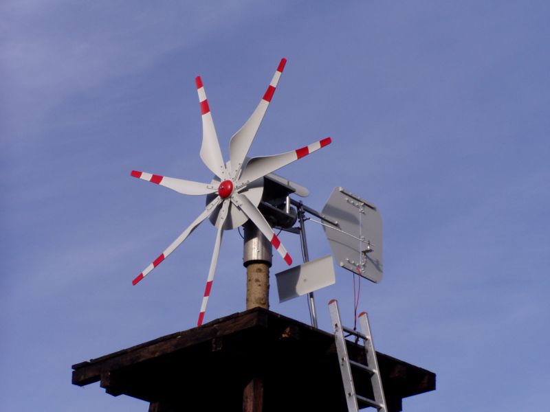 deine Arbeit sieht sehr solide aus. Sei nur vorsichtig mit dem Rotor: Mein Eigenbau war bei Windstärke 7 (Repeller Ø 2,5 m) und direkter Anströmung von der Ostsee nur mit aller Gewalt zu stoppen. Wäre auch schade, wenn dein Mädel beschädigt wird ...