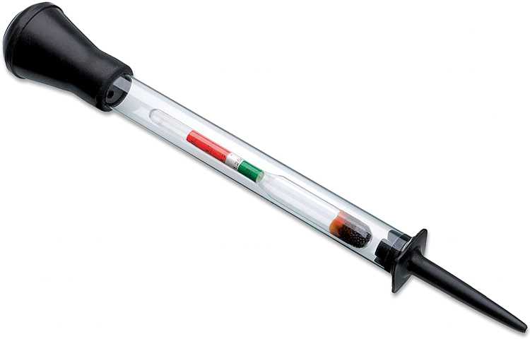 SoH des Akkus zu ermitteln. Die Messung erfolgt mit einem sogenannten "Säureheber" nach min 5 Minuten gasen oder EUW und üblicherweise nachdem man den Akku mindestens einmal voll geladen hat. Man misst entweder die Pilotzelle (die Zelle wo man am besten dran kommt) oder über alle Zellen um Abweichungen oder Alterung zu bewerten. Man vergleicht meistens gegen die Nennsäuredichte z.B.