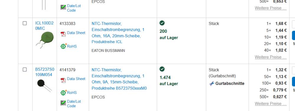 NTCs regulieren die Spannung runter, werden niederohmig.