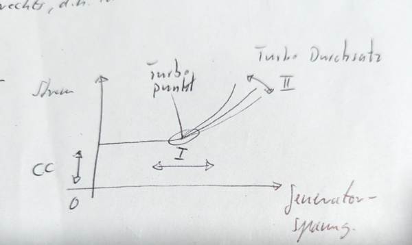 Der Rotor wird beim Anlaufen deutlich weniger belastet, kann hoch drehen, dann, plötzlich, wenn eine stärkere Böe kommt, fließt ein Kippstrom, der den NTC heiß macht und dieser wird dann niederohmig, gegen 0 Ohm und lässt ab dann allen Strom 1:1 durch. Erst wenn länger weniger als der Kippstrom fließt, wird der NTC wieder kalt und der Rotor wird wieder weniger belastet.