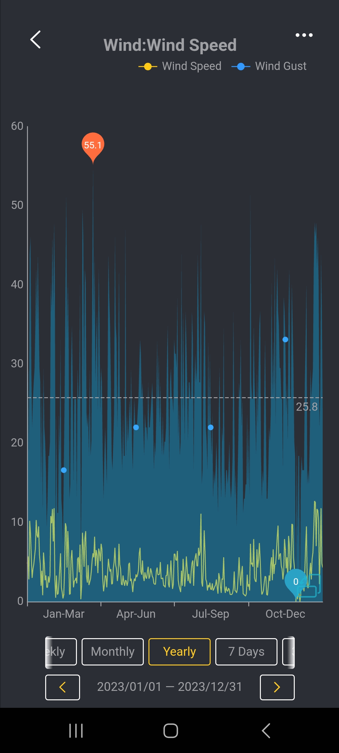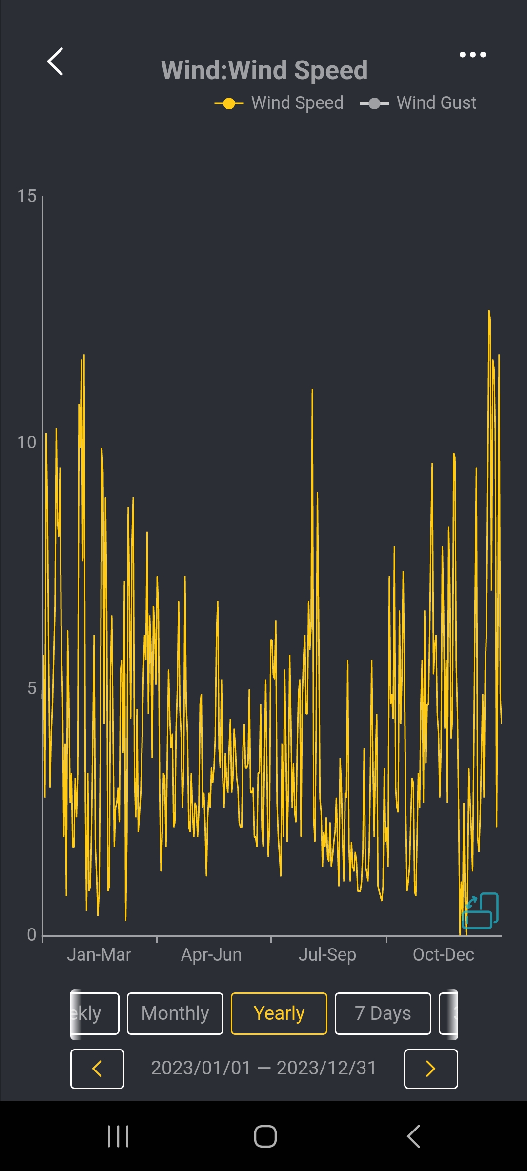 Und ganz vergessen hier noch mein Jahreswind dazu. In kmh! Auf der Achse.