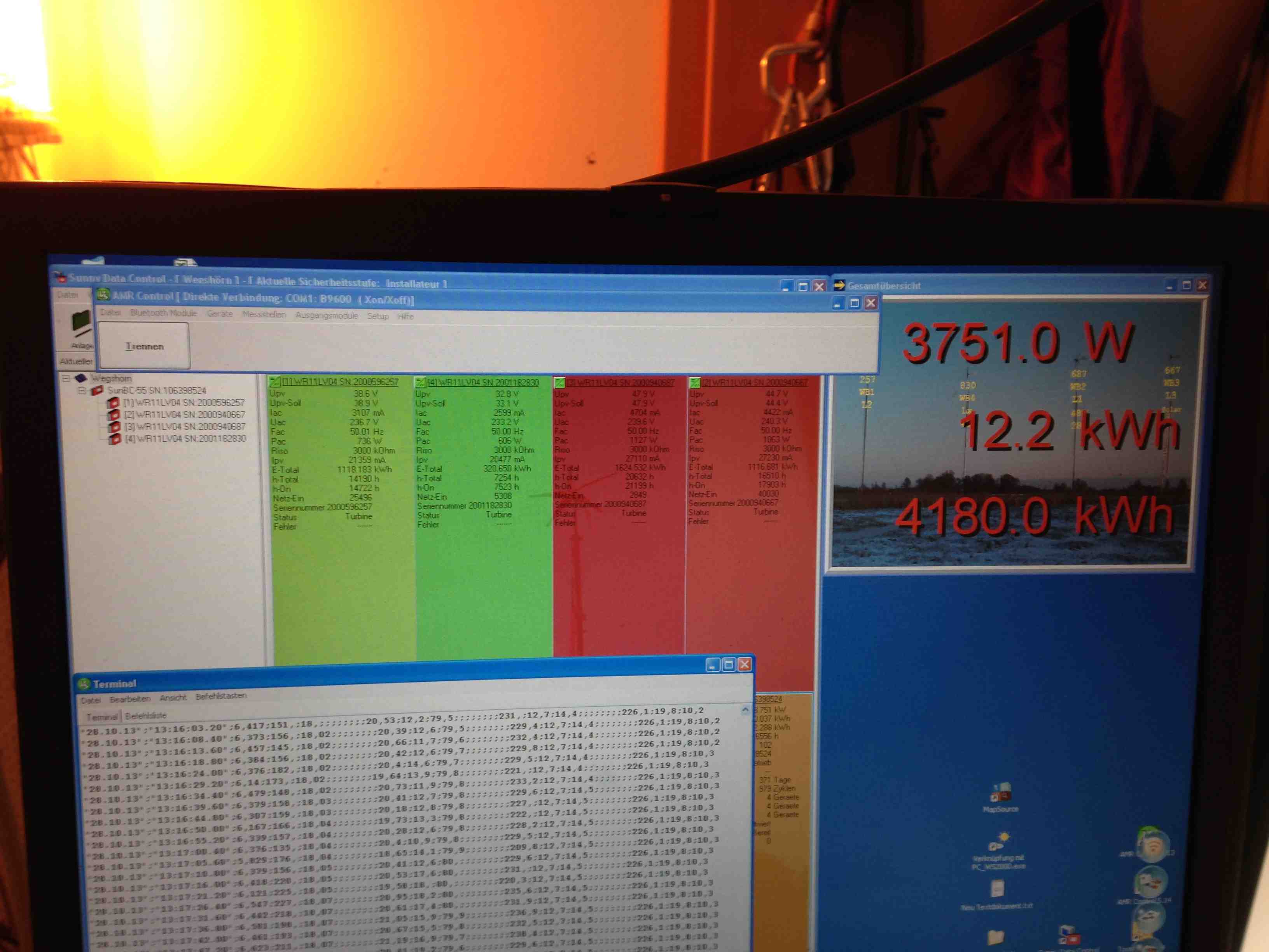 Kurz die Randbedingungen: Skywind auf Rohr, 9m Nabenhöhe, Randlage in Siedlung (von Nordost über Ost bis Südost freies Feld), Laderegler für Akku.