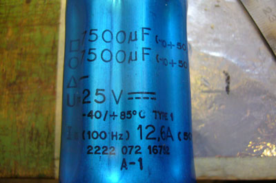 Ich habe den unteren ( doppel 7500 µF und bestimmt 20 Jahre gelagert ) mal an 8 V ~ vom Trafo geklemmt, bringt rund 10 A Dauerstrom .