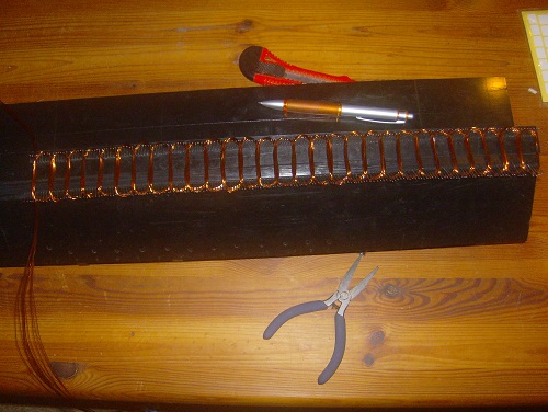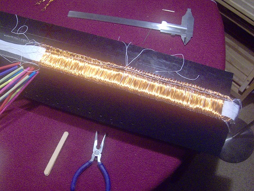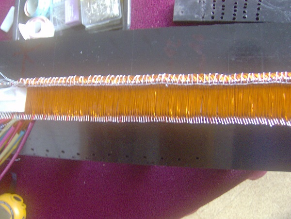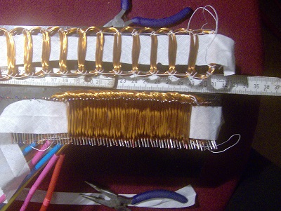 Ich werde mit 2 mal 12 Drähte versuchen 24 Windungen in den Querschnitt zu bekommen. Das wären 24 x 864 (Schenkel) = 20736 Drähte