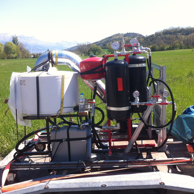 Also, ich habe eine Maschine gebaut, die erzeugt ca. 150 l (Ammoniak)-Dampf pro Minute mit einer Druckdifferenz von 15 bar (Der Dampf hat 22 bar, und das flüssige Ammoniak - vor dem Verdampfen - bei einer Temperatur von 15 ° C liegt bei 7 bar.