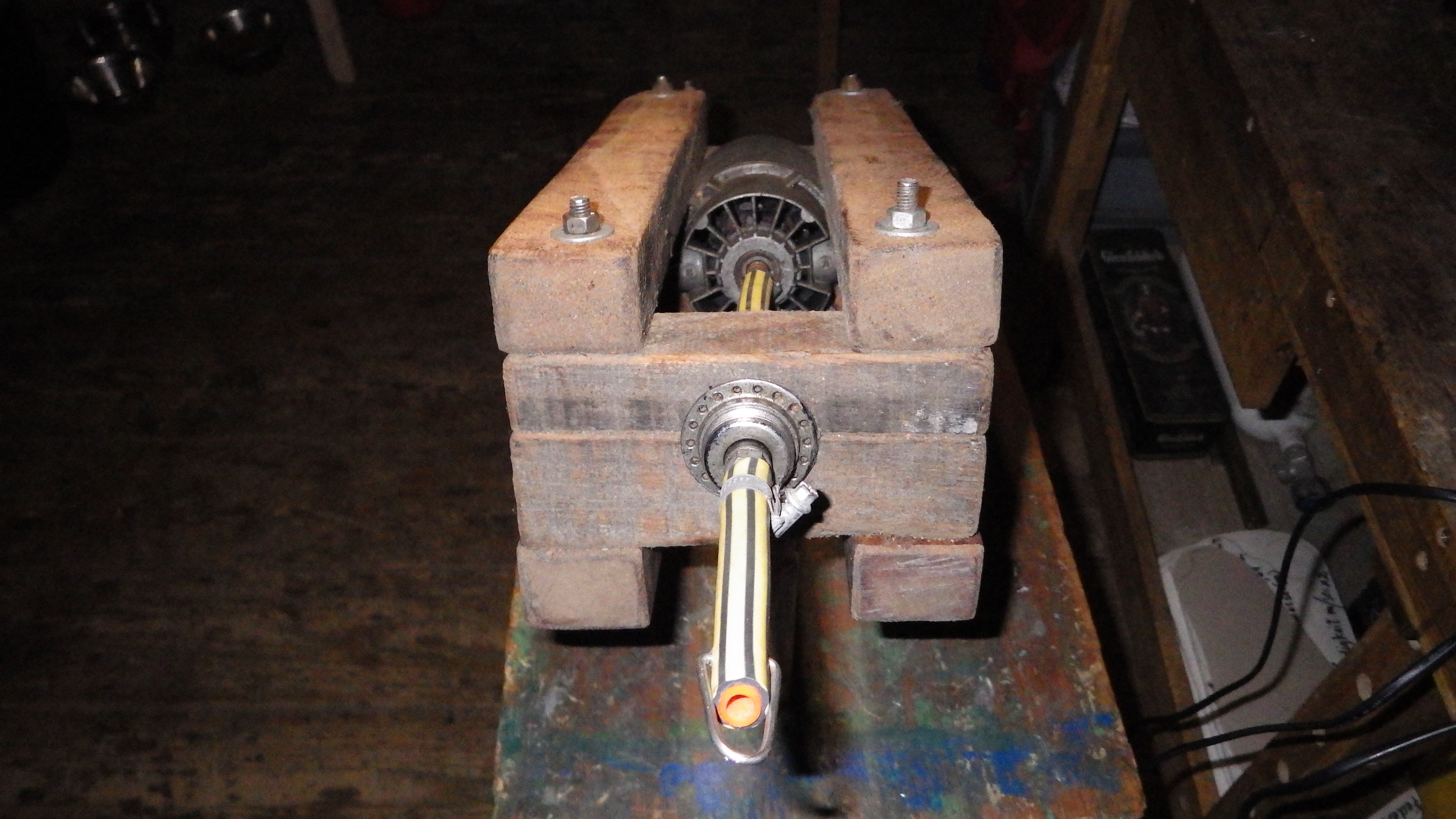 ja danke! Der Generator wird wahrscheinlich dieser auf dem Foto. Es ist ein italienischer 12 V DC Waschmaschinenmotor den ich in einem Holzkäfig mit einer Fahrradnabe von der Zuglast entkoppelt habe. Mit 15 Segelrotoren sollte er wohl gut drehen. Das wird nocxh dauern, ich hab ja erst 5 Rotoren soweit fertig und fürs Ausprobieren muß auch das Wetter stimmen.