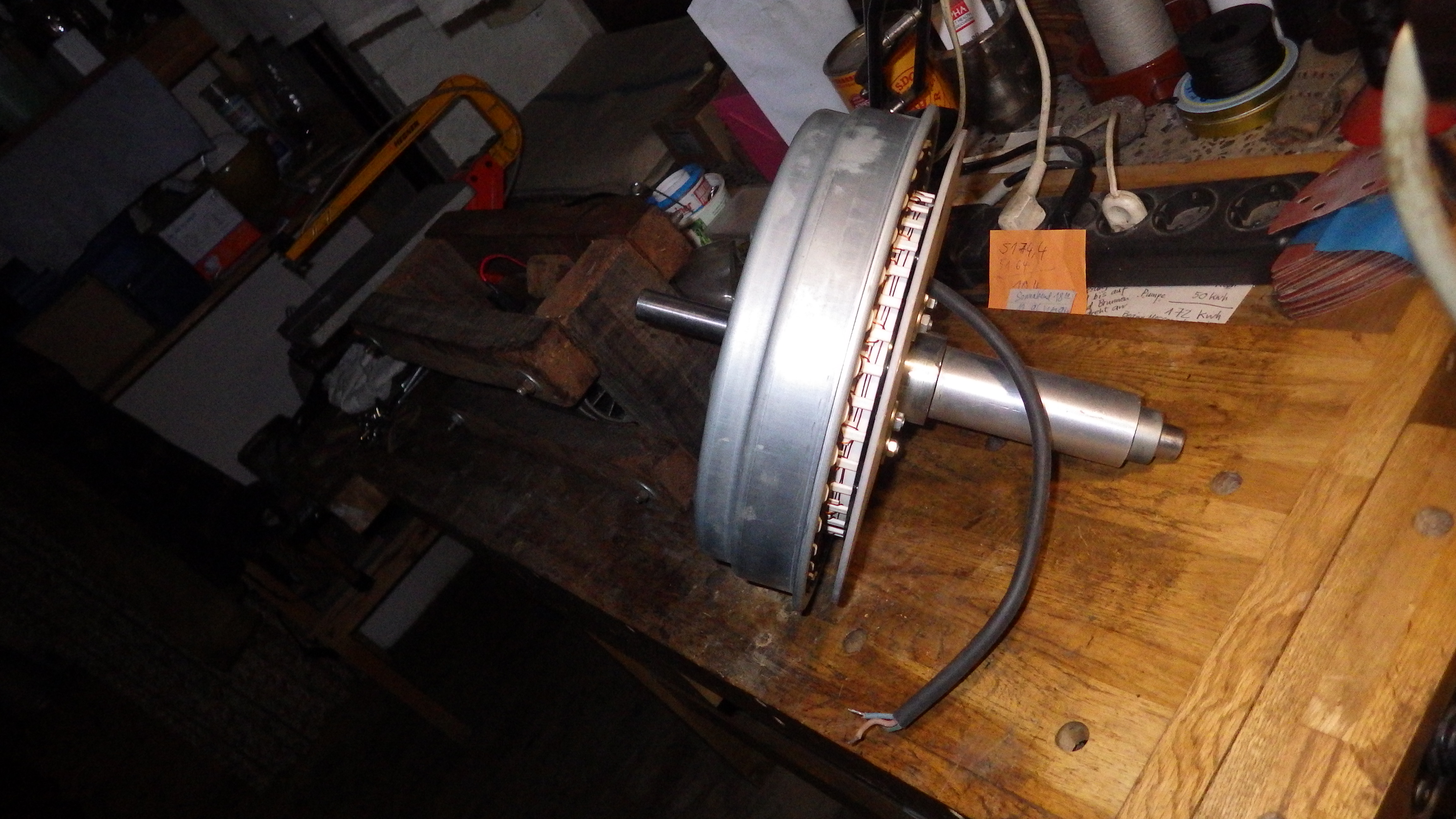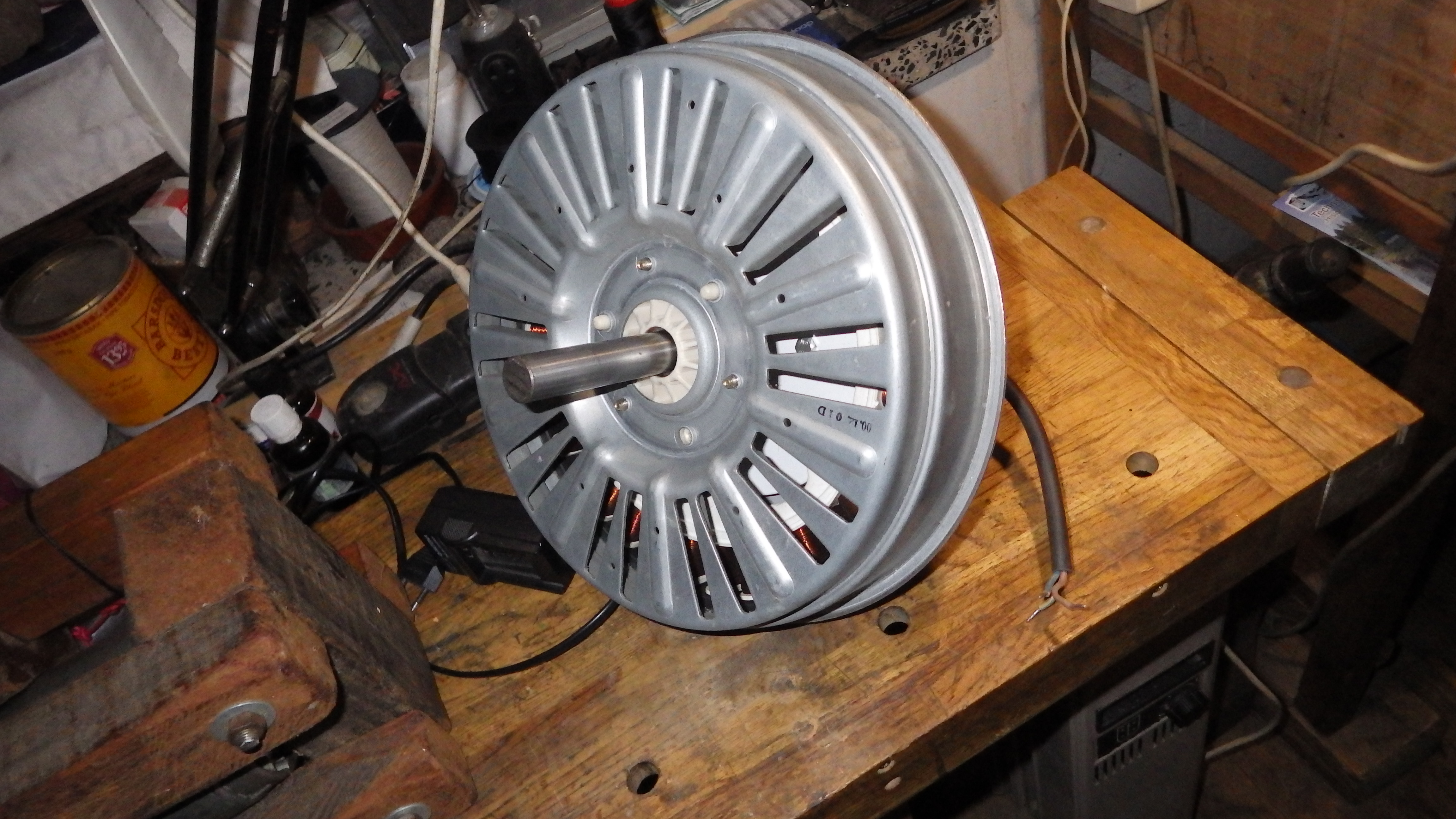 Der Waschmaschinenmotor ist für den Versuch besonders geeignet weil es mir bei dem Kettenrotor von Anfang an (schon vor 15 Jahren) darauf ankam, Generatoren aus der normal üblichen Massenfertigung nutzen zu können. Evtl. sogar KFZ Limas ohne diese aufwendig umwickeln zu können.
