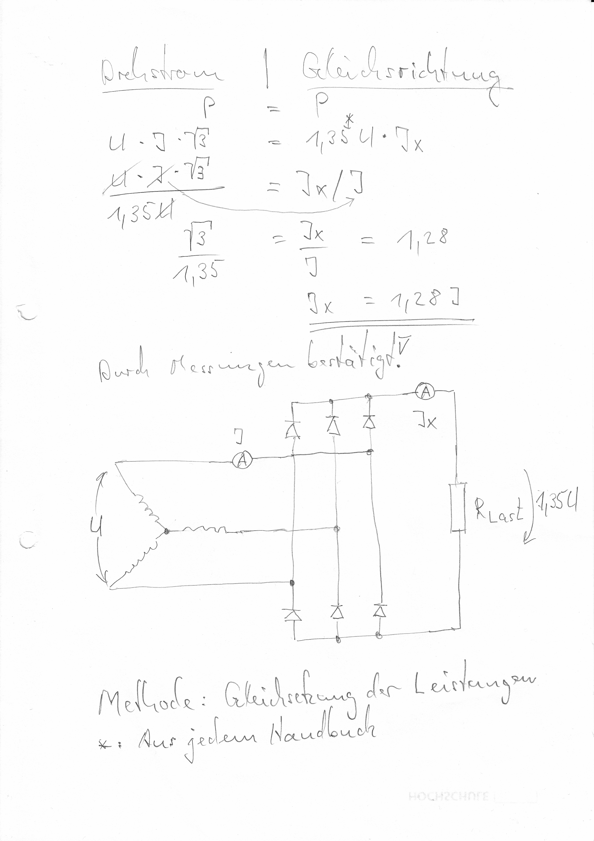 Die Leistung auf der Drehstromseite ist deshalb nicht 3*I AC *U AC, sondern nur 1,73 *....,