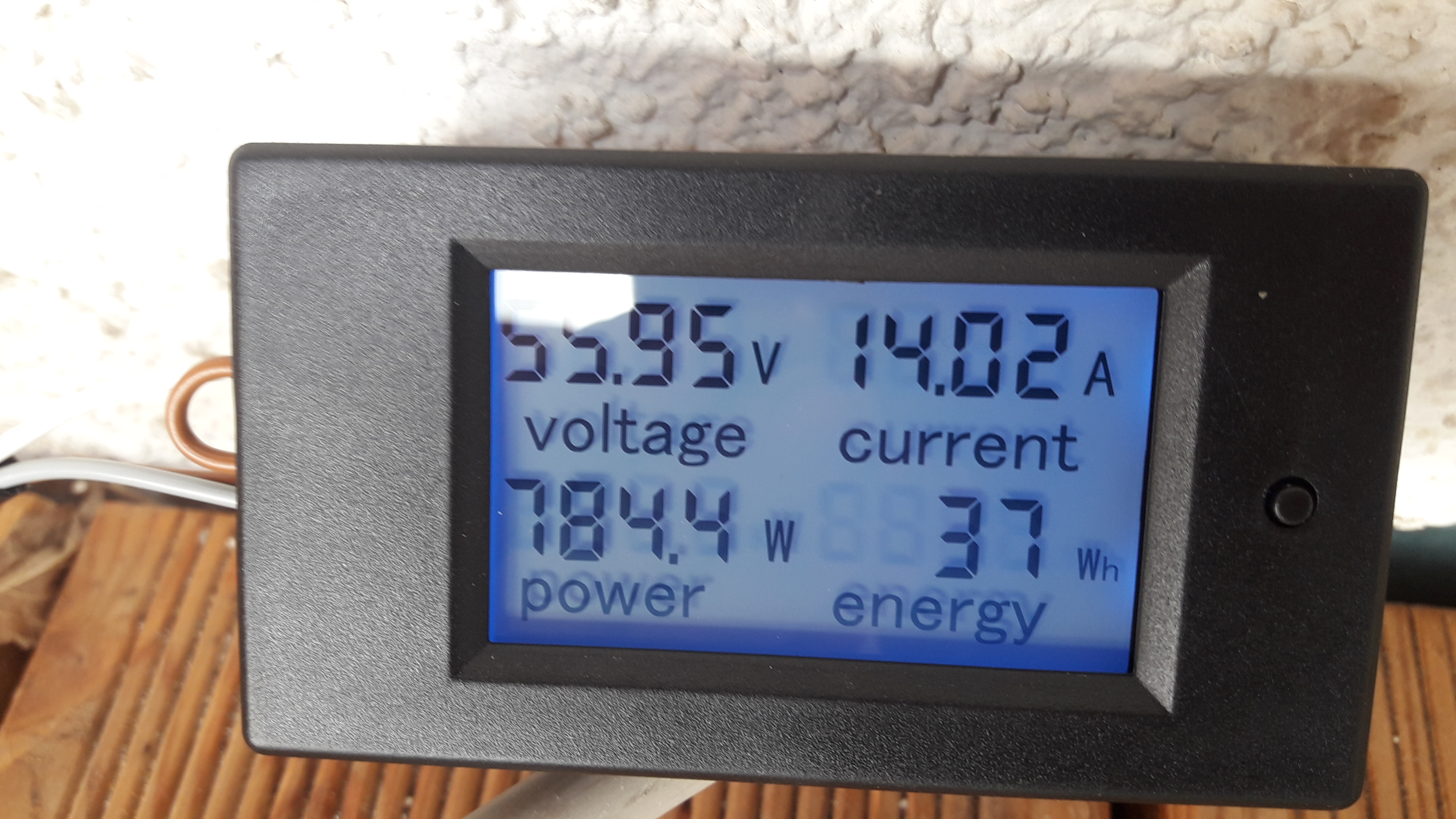Sorry, die Werte muss man alle halbieren, die würde bei einem 100A Shunt passen, ich hab nur den 50A-Shunt. Aber ich hatte inzwischen noch Peaks bis 1300W, also dann jeweils die Hälfte, kann man auch zufrieden sein!