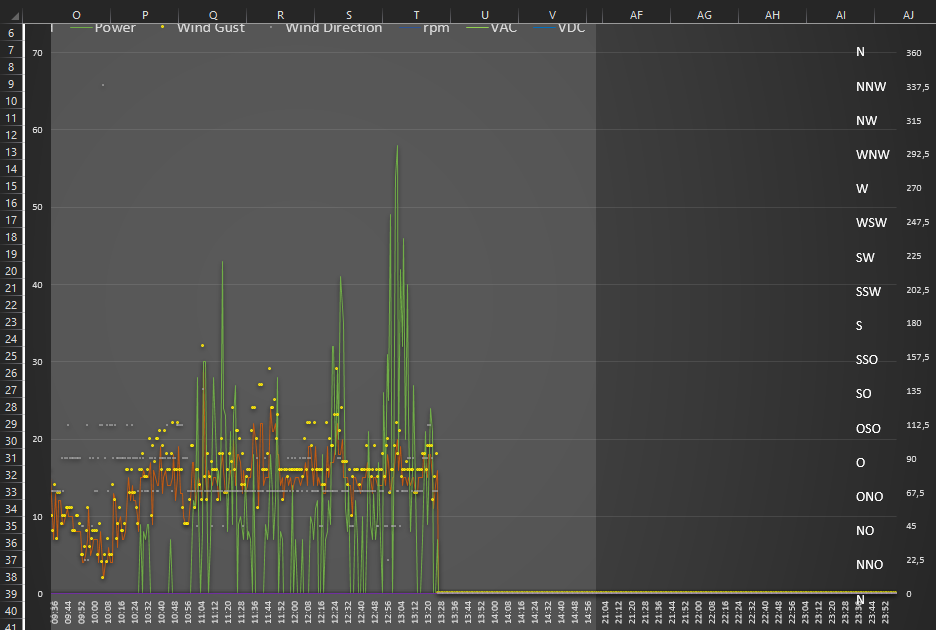 Ich find es mega. Kannst deinen kleinen SUN ja direkt stornieren. Und hinsichtlich Kennlinie, ich denke da hat @Che ganze Arbeit geleistet. Verbesserungen/Anpassungen bitte gern mitteilen. Aber dein gefühltes hochdrehen und segeln ist glaube ich falsch gefühlt. Aus dem Windkanal geht ja zu jeder Windstärke die optimale Belastung hervor, selbst den WR Eigenverbrauch hat Che berücksichtigt. Unnötig hohe Drehzahlen werden dadurch vermieden. Mag in einem bestimmten Punkt gefühlt mehr Drehzahl besser sein, aber ist halt unnötig, denn obemrum ist zu viel Drehzahl einfach nur laut, bringt aber nicht mehr. Denn ganz wichtig, spätestens ab 60V sollte die Ista gestoppt werden! Keiner weiß vorher, wann der Wind nicht doch mal ganz schnell deine max 2000W Belastung überschreitet. Und dann dreht sie frei, oder verglüht!