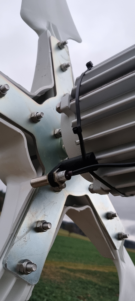 Ich hatte noch einen Hall-Sensor nebst Display-Einheit herumliegen, den ich schon bei meiner Workbench im Einsatz hatte. Für diesen habe ich nun eine Halterung gedruckt und ihn (vorläufig) mal mit Kabelbinder an die Gondel gehängt.