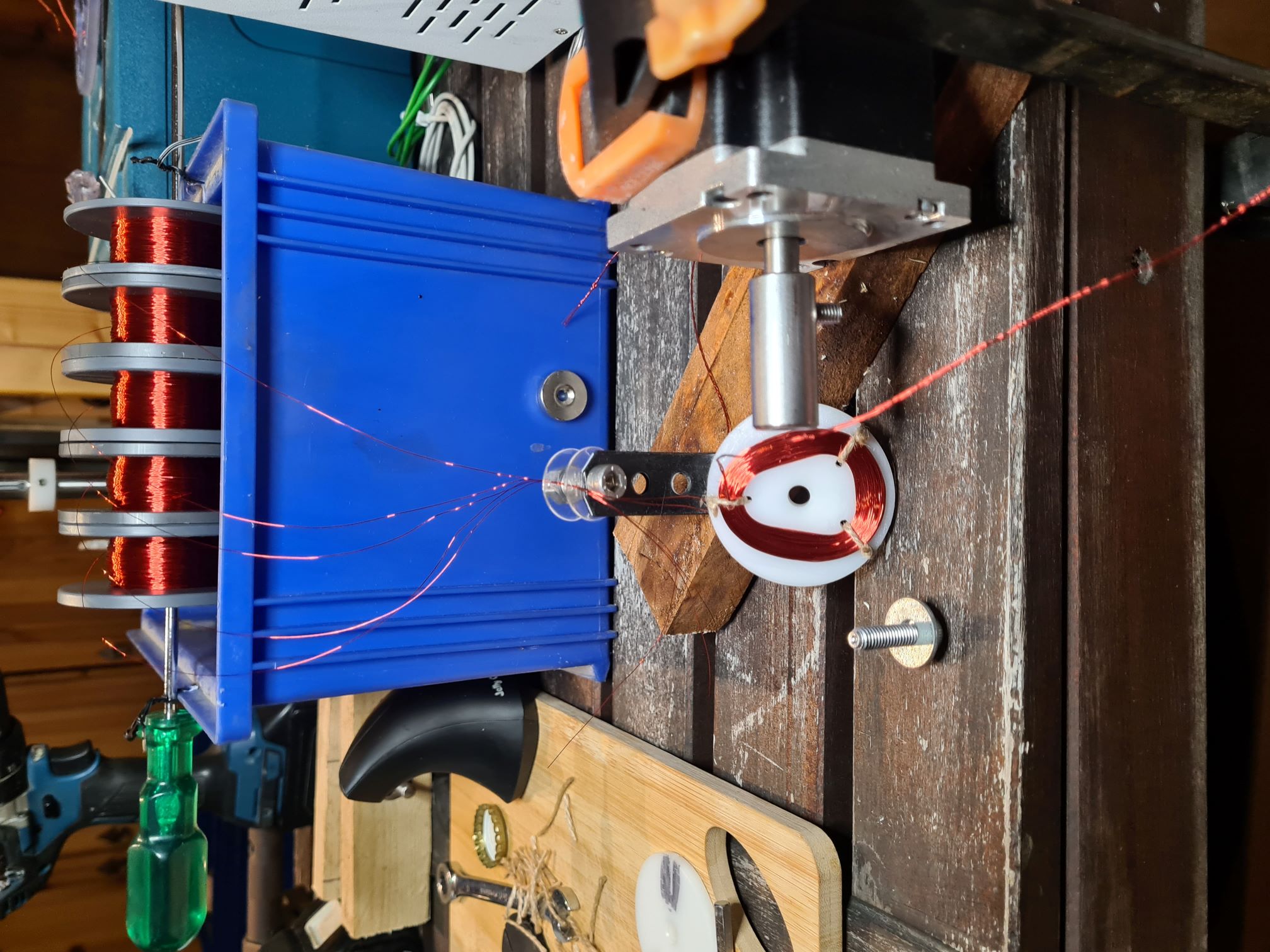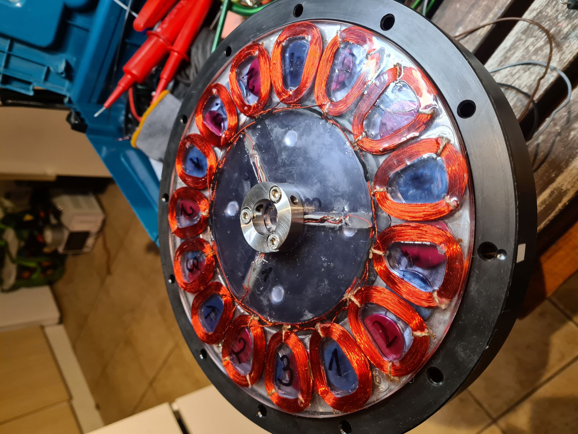 Ein erster Test lieferte 26V bei 250U/min und etwas mehr als 1A Kurzschlussstrom. Damit bin ich ganz zufrieden.