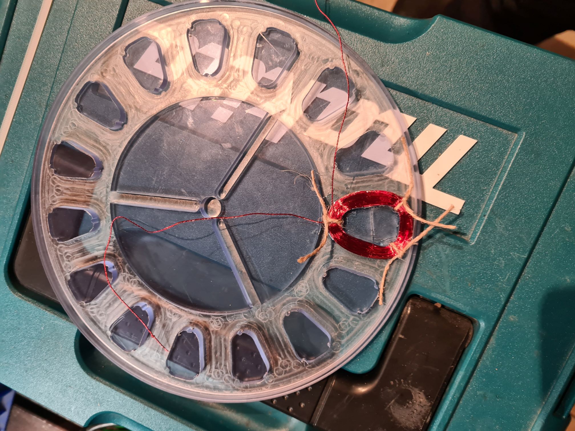 In Auswertung ist zu erkennen, dass genau in dieser Stellung von der Magnetscheibe im ersten Bild hier die Phase der zugeordneten Spule (die mit dem U mit Bleistift)