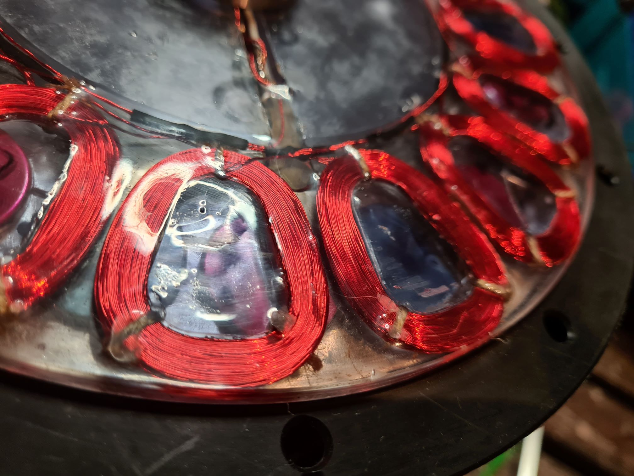 Wenn die Spule nach innen verbreitert wird, erzeugt sie an diesen Leitern nicht mehr Spannung da auf der Gegeneite eine anders gepolte Spannung generiert wird, aber der CU Wiederstand steigt in gleichem Maße.