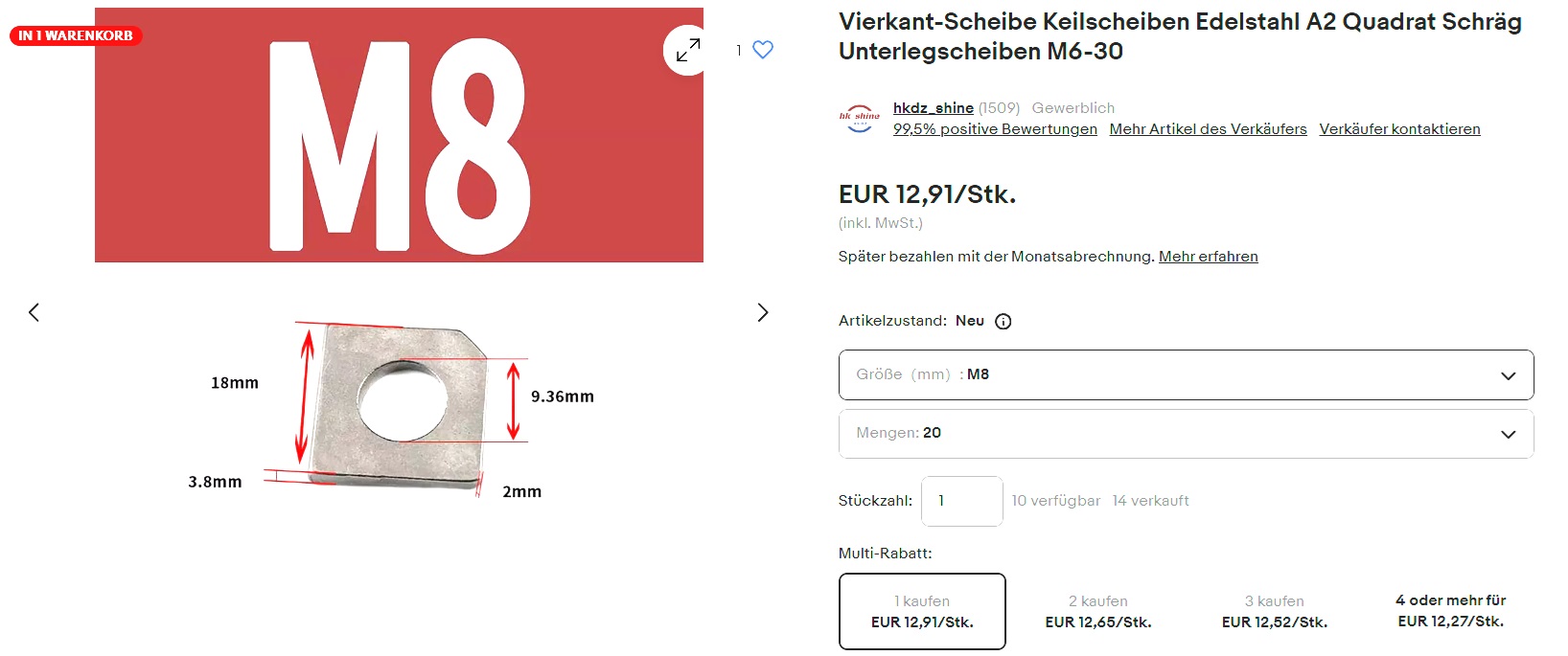 Die Muttern stehen dann natürlich komplett schräg auf der Nabe, da müsste ich dann auch noch was machen. Die Keilscheibe DIN 434, welche Che empfiehlt hat leider nur 8%.