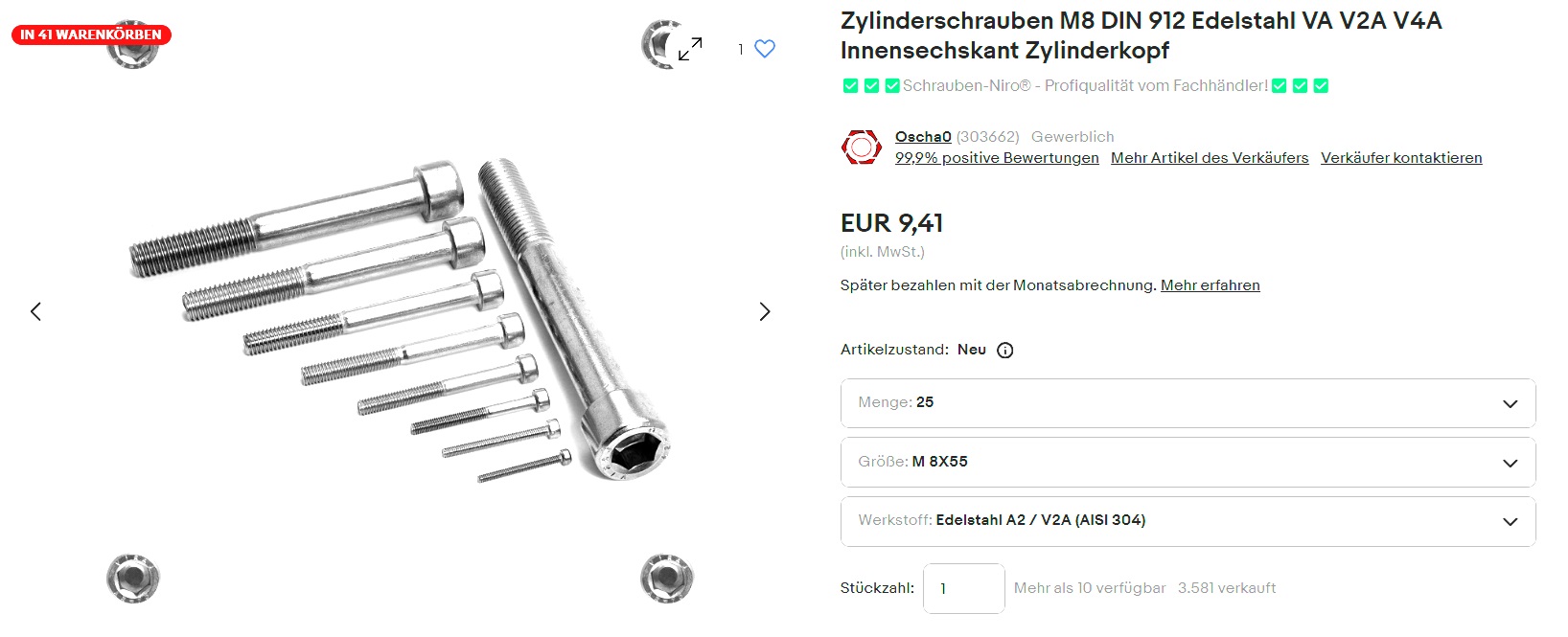 Der Windmüller hat 20 Schrauben aus Niro, mit Muttern, für 7 EUR bekommen. In einem speziellen Klein-und Normteilehandel, direkt an der Ladentheke. Die hatten zudem Längen in 5mm Staffelung da.